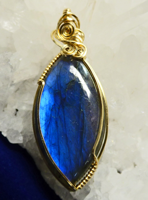 高品質ラブラドライトペンダントトップ(14Kゴールドフィールド)