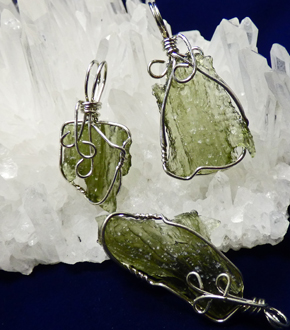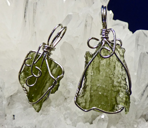 モルダバイトは、テクタイトの一種で、地球外に起源があり、巨大な隕石が地球に衝突した時の熱が周囲の岩を変性させた結晶です。